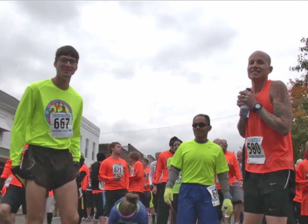 at the starting line of the Give 'Em The Bird 5K in Versailles
