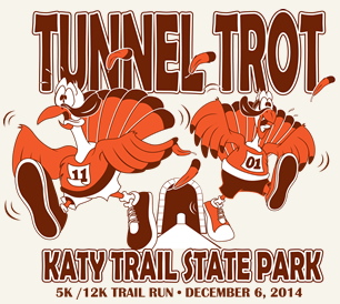 The fourth and final race of the year in the new race series introduced in 2014 by the Missouri State Parks to showcase the state's recreational trails was held on Saturday afternoon (December 6th) on the Katy Trail in Rocheport. The Tunnel Trot Trail Run--named after the iconic train tunnel on the Katy Trail--brought out 40 runners in the 5K, and another 29 for the 12K.