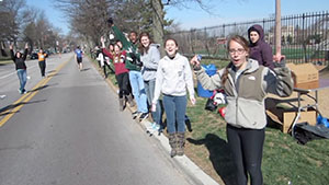 My thought was to have a spot at around the 25.9-mile mark--located in the residential neighborhood behind Bass Pro's parking lot--where our Lake-area spectators could cheer on all of the full and half marathoners (including their friends and family members in the race, of course), and where Lake-area runners could gather after finishing for some post-race camaraderie and to join in on the cheering.