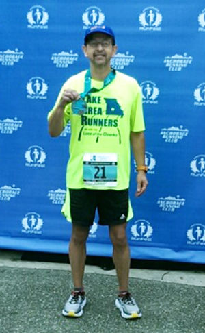 Brad Gant, who lives in Roach, finished in 1:04:09. That placed him 18th (of 22) in the men's 30-39 age group.