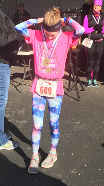 Jade Fletcher braved sub-freezing temperatures on Saturday at the Sweetheart Shuffle 5K/10K in Independence, and was rewarded with an age-group victory. She finished the 10K in 53:48, and won the women's 11-14 age group by default.