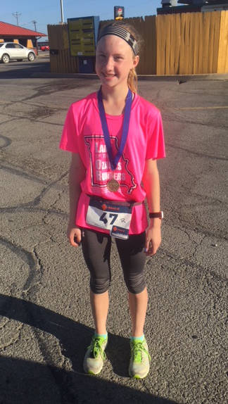 All streaks eventually come to an end, and that was the case on Saturday for our local runner Jade Fletcher's string of consecutive age-group or overall race victories. Jade's string ended at six, after finishing second behind one other runner in the women's 13-15 age group at the Chocolate Rush Half Marathon in Kansas City. At age 13, Jade was the youngest of all 223 half marathon finishers.