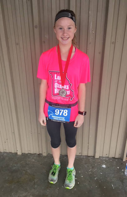 Kelsey Wallis of Eldon finished minutes behind Jade, in 2:04:37. Kelsey placed second (of three) in the women's 15-16 age group. This was likely Kelsey's first half marathon, as well.