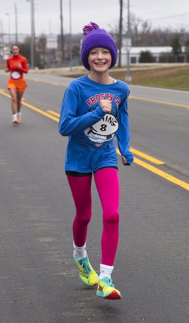 Taylor Brown of Waynesville was the overall women's winner, finishing in 27:05. Taylor faced a serious challenge from the winner of the women's 10-and-under age group, Conley Helton of Macks Creek, who finished 30 seconds behind.