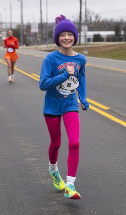The Polar Bear Strut rarely has a repeat winner in the women's race, and this year was no exception. Maddie Rademan, a sophomore cross country runner at California High School, was the winner, in 23:37. (By comparison, Maddie ran a 20:03 for an 11th-place finish at the Class 3 state championships last November.)