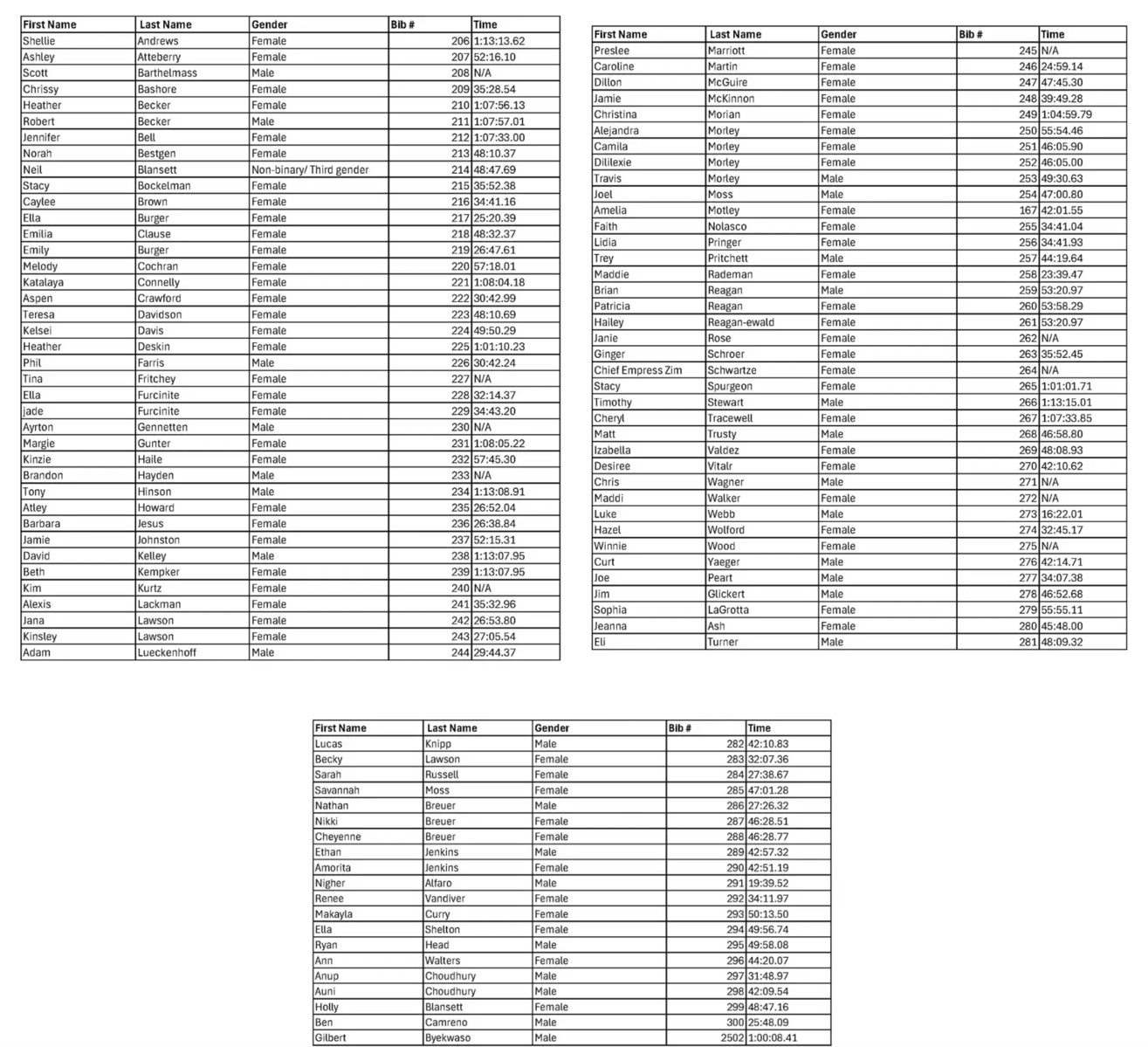 | Tucker Seise | Osage Beach | 3:35:08 |