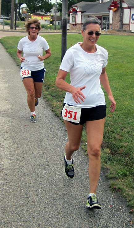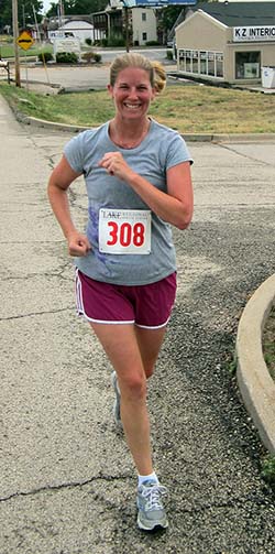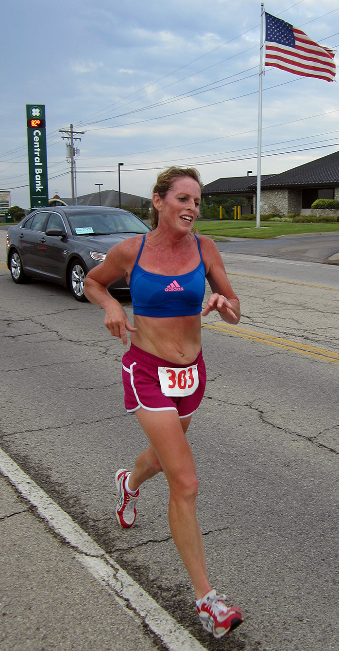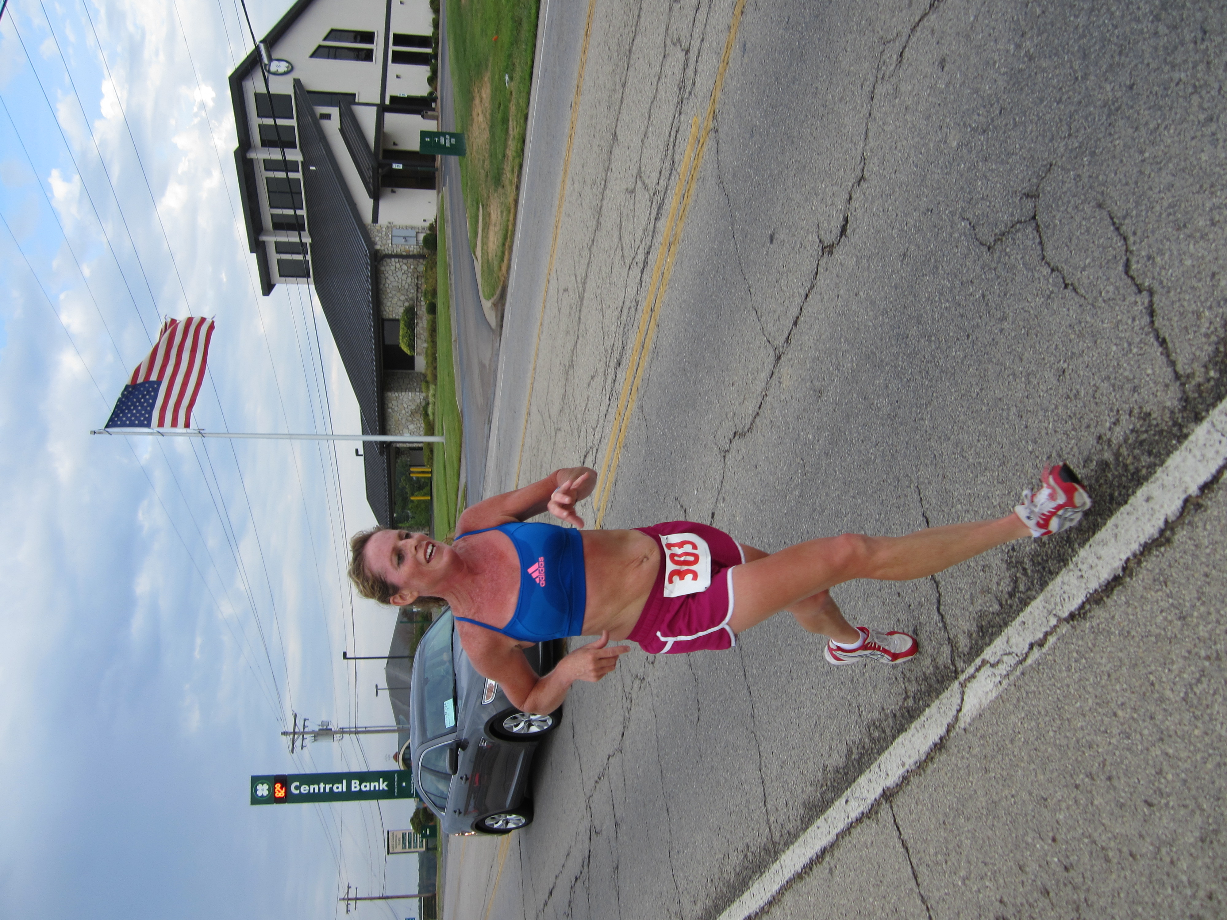 As I told this young lady, if you're able to smile during a race, you're slacking.