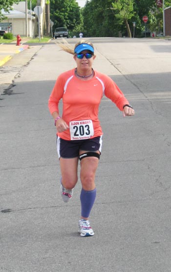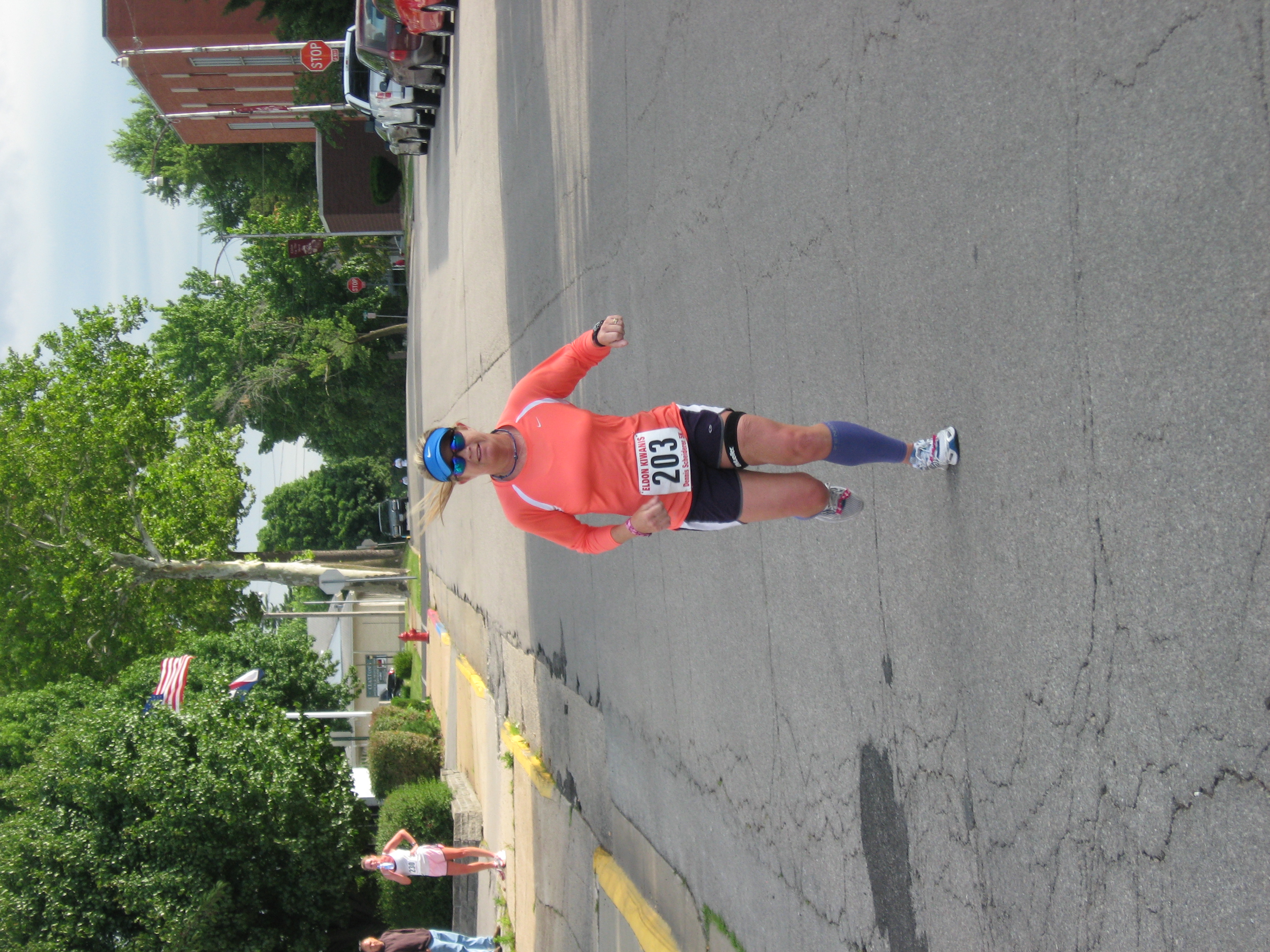 April Leonard approaching the finish line. April lives in Elkhardt, Indiana, but also has a farm near Eldon.