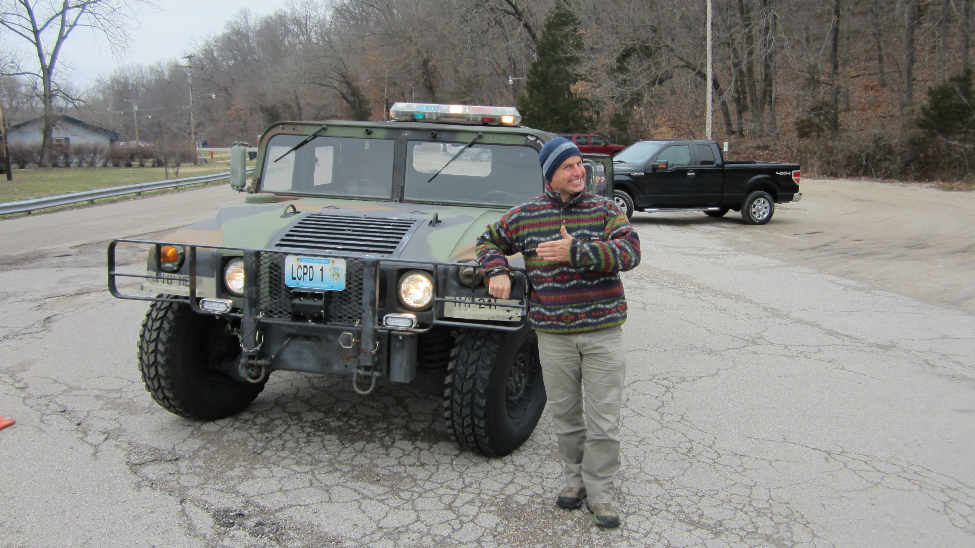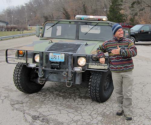 Linn Creek Police Chief Trevor Dowdney, proudly displaying the department's H1 Hummer(Download)