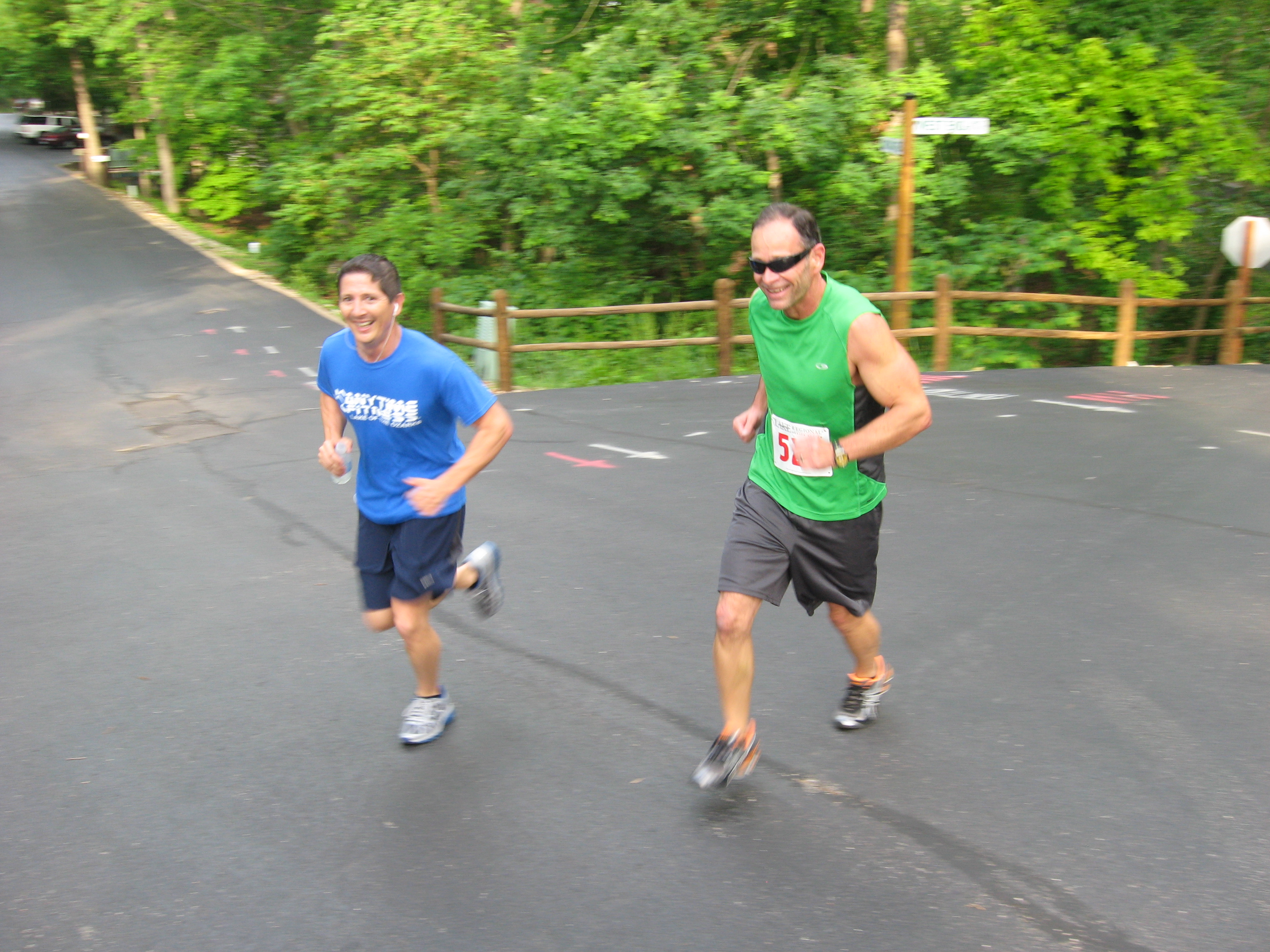 Kelly Goss (left) and Steve Laudwig, both with enough energy left to smile for the camera after the turnaround. You should have seen 54 year-old Steve fly up a steep hill past me.