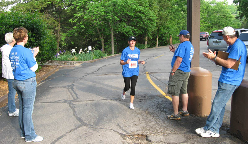 Tammy Scheiter, crossing the finish line in 33:45.