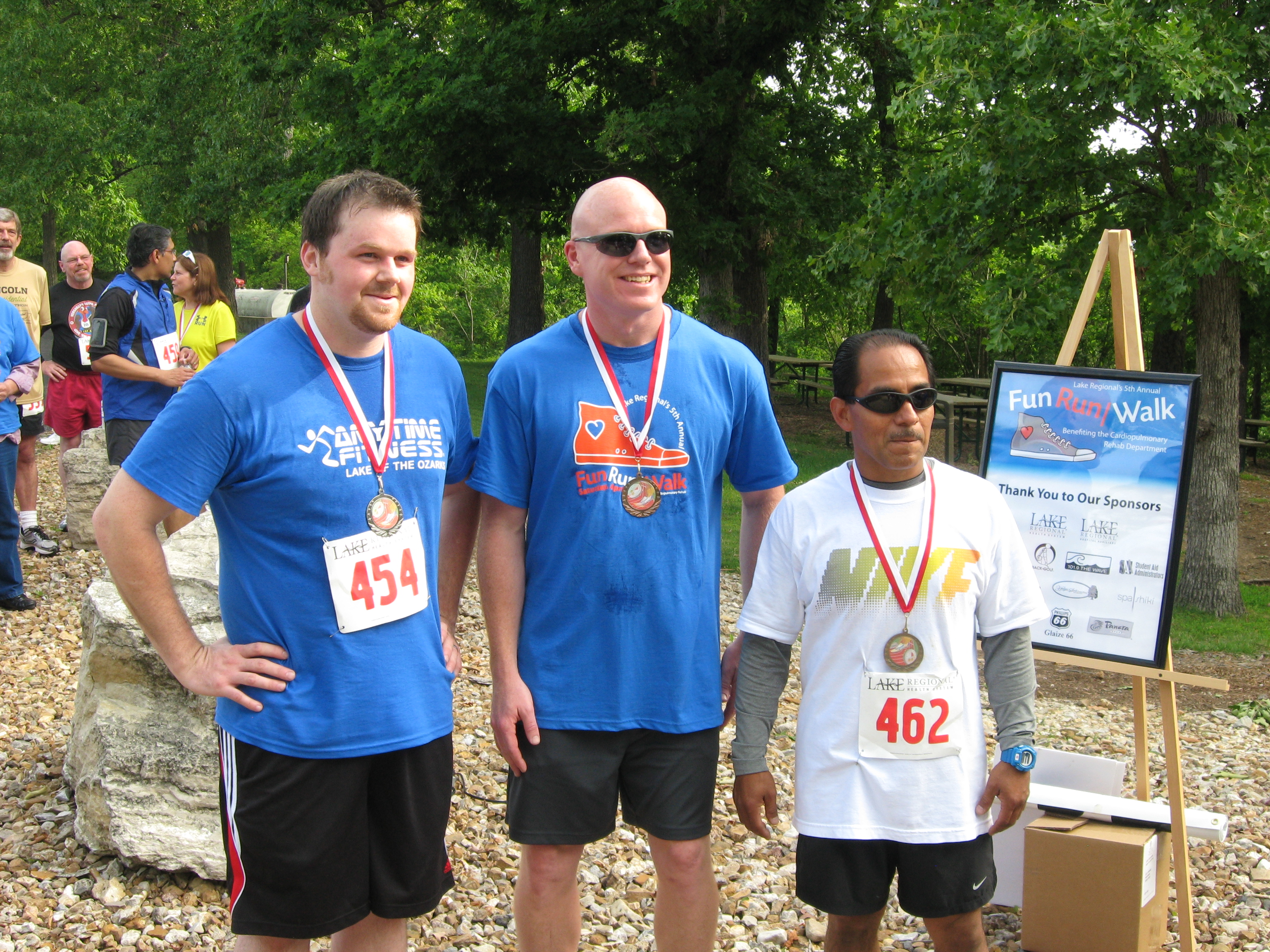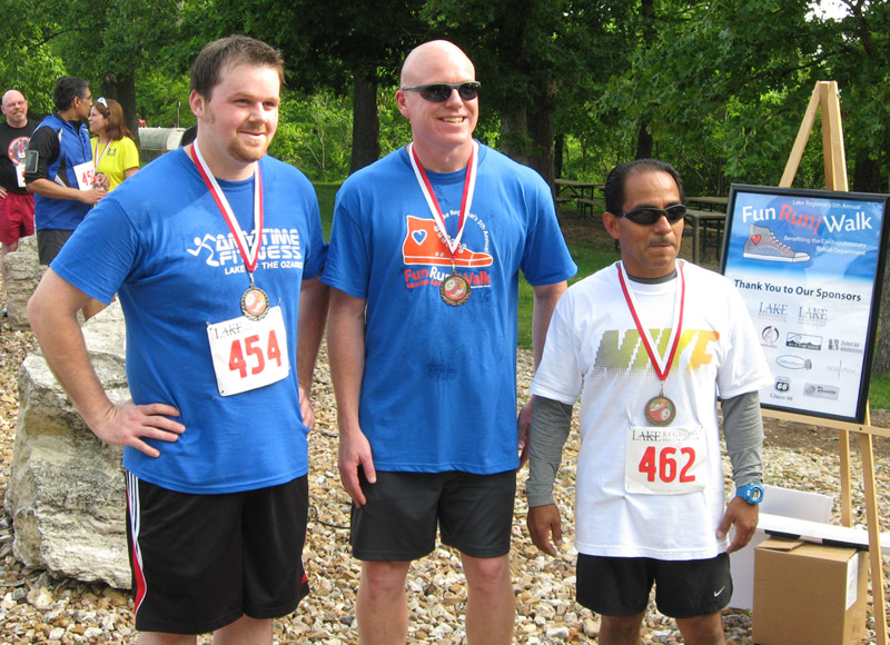Top finishers in male 19-49 age group (left to right): Kyle Clark (second), Jason Self (third) and NIgher Alfaro (first, and first overall male).