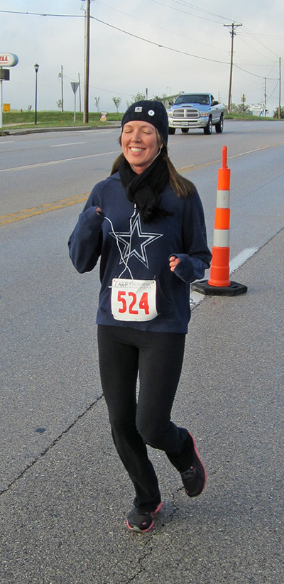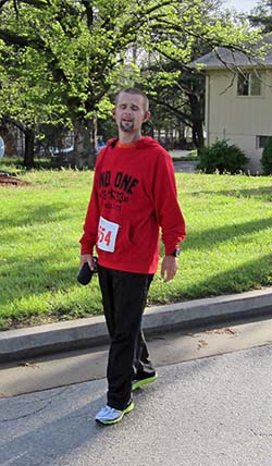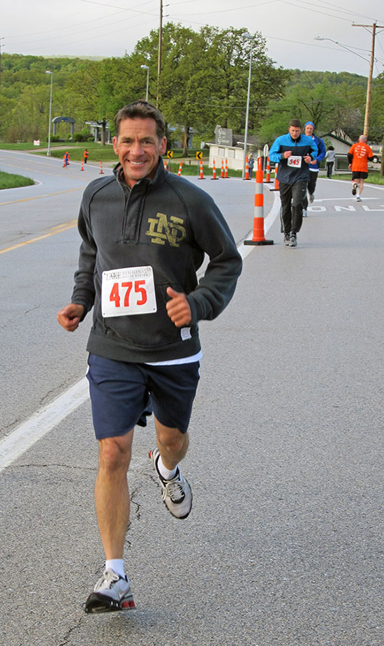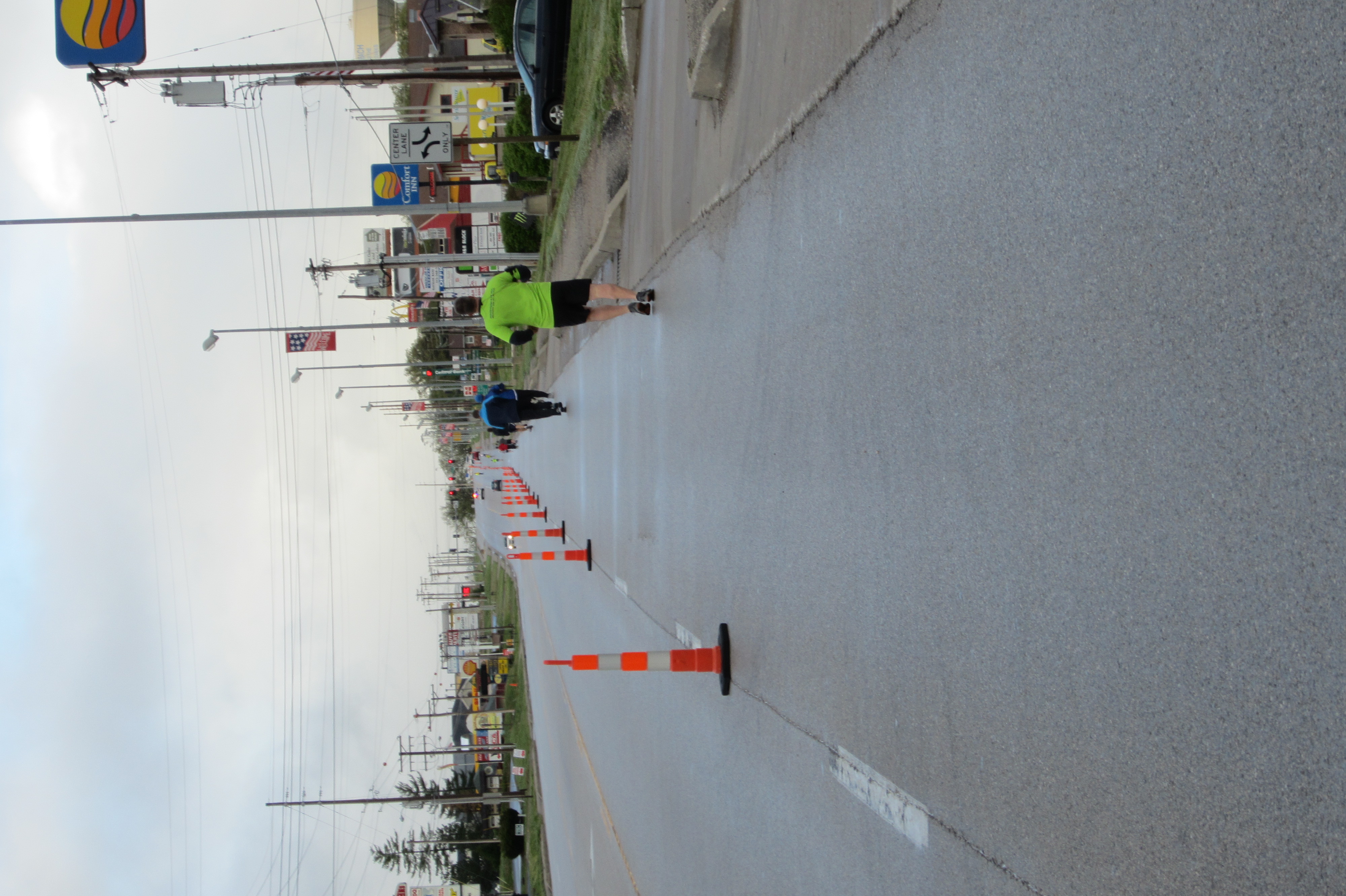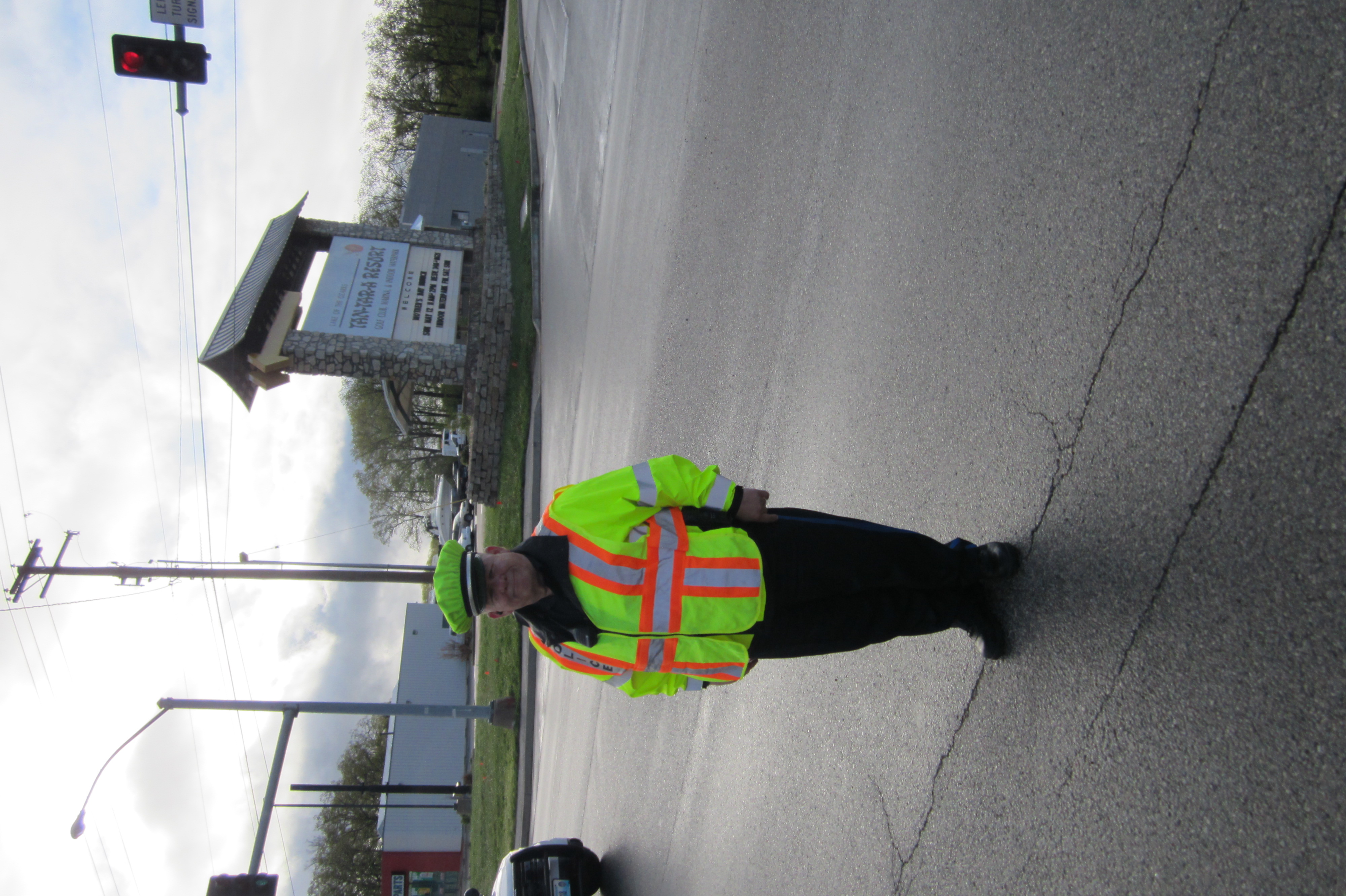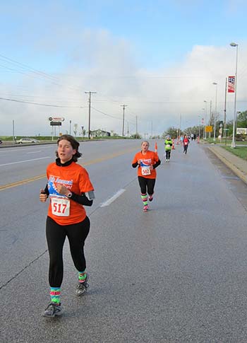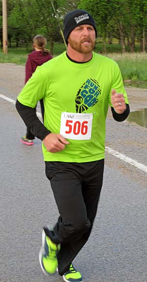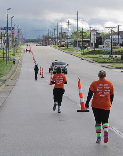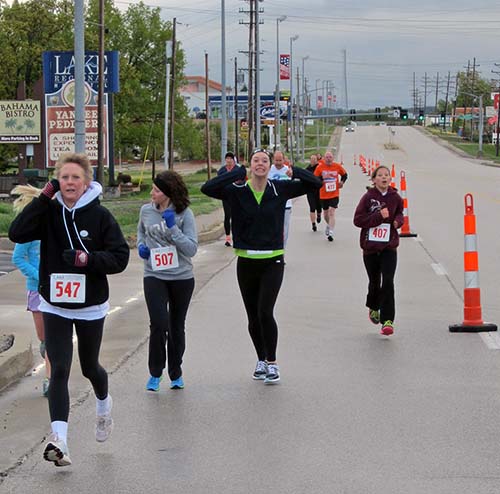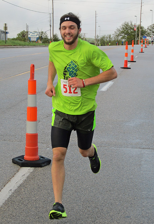 An Osage Beach police officer directed traffic at Osage Beach Parkway and KK, giving runners safe passage through the intersection.