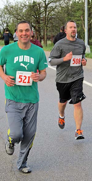David Prather (left) is closely followed by Thom Wilkins just past the halfway mark of the race.