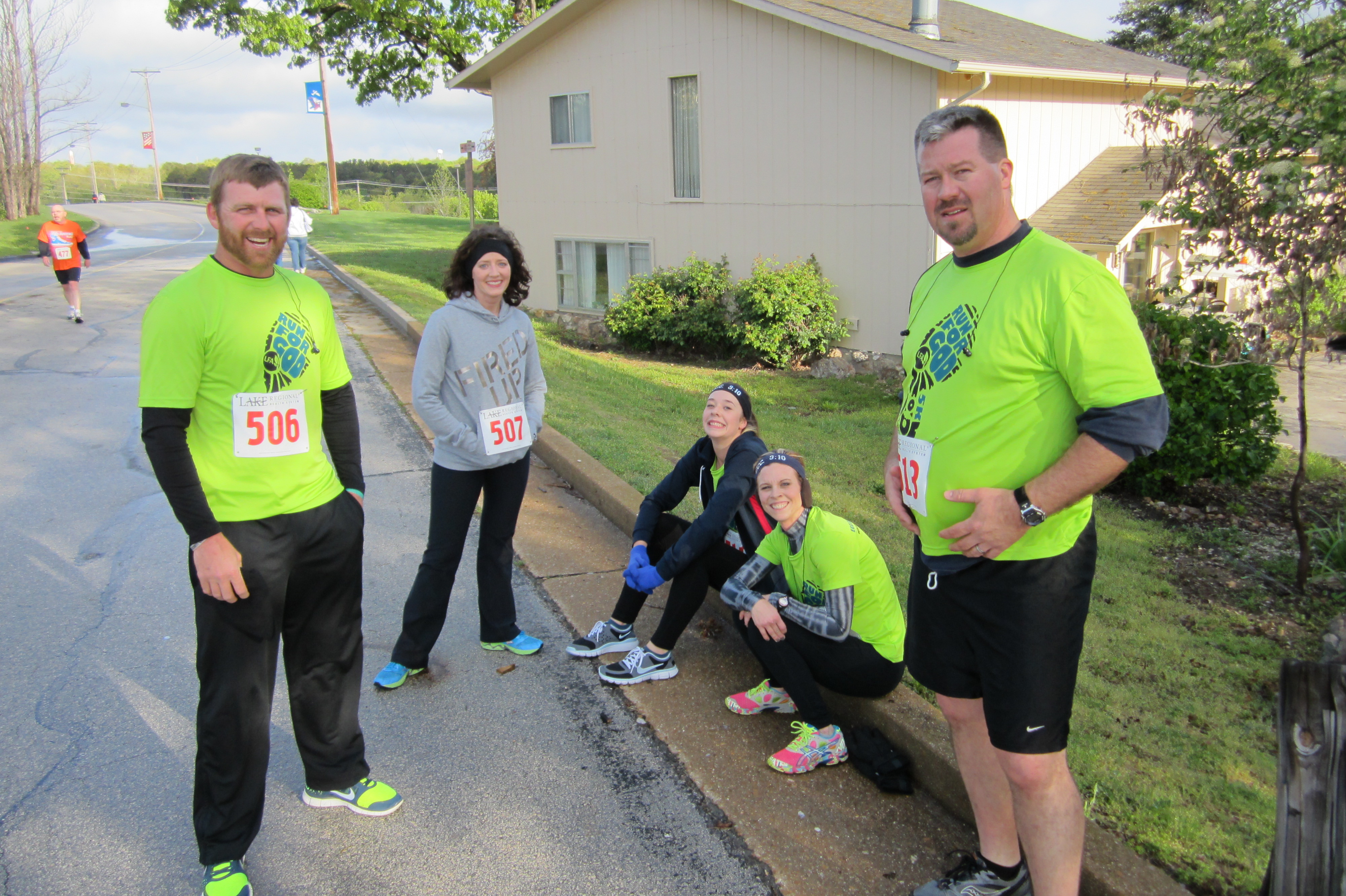 Left to right: Aaron York (23:04), Becca Weaver (29:30), Rachel Harrison (29:31), Rachel York (28:06), and Joe Knapp (28:01).