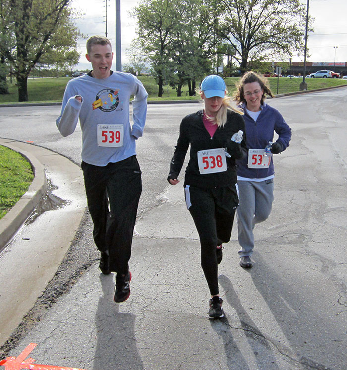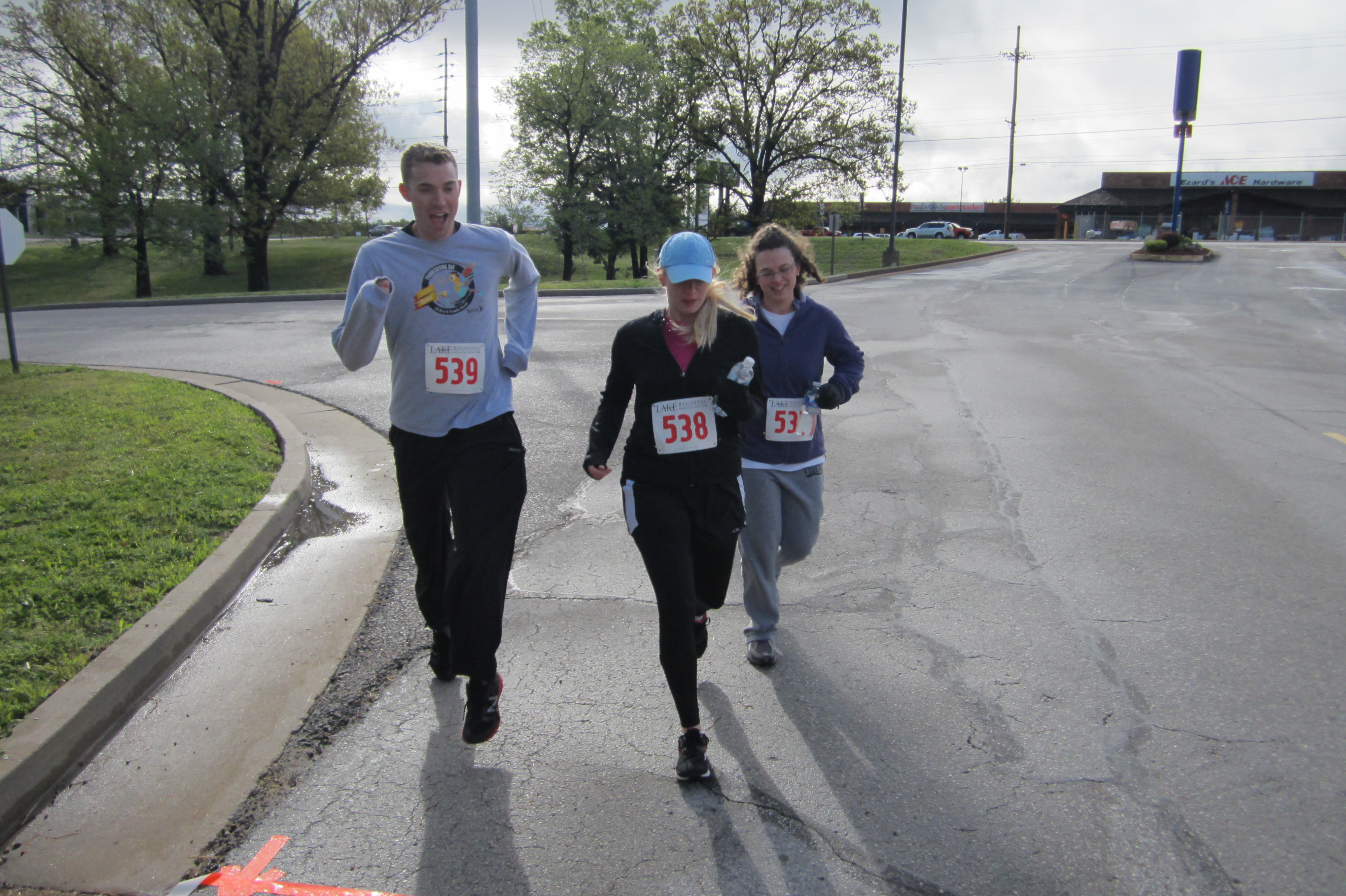 The final finishers (in 45:13): Chad Sanderson, Cami Sanderson (#538), and Andrea Allen