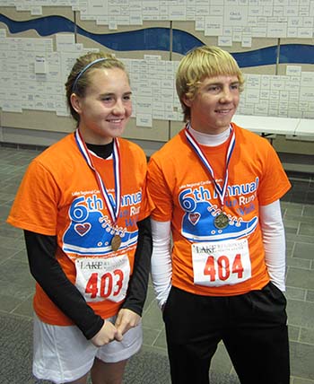 Overall female and male winners Merri Lynn Voss (27:27) and David Prather (18:56).