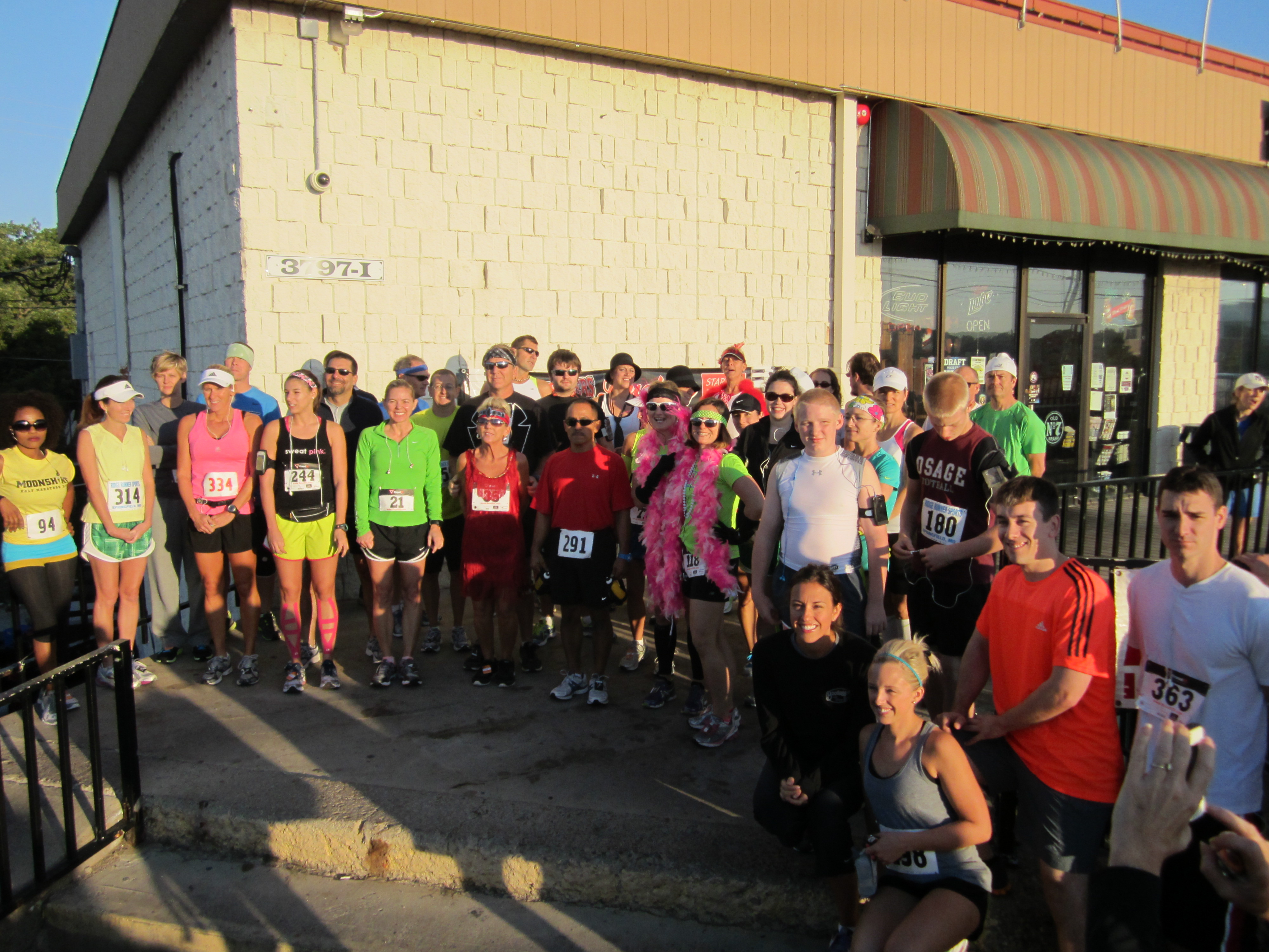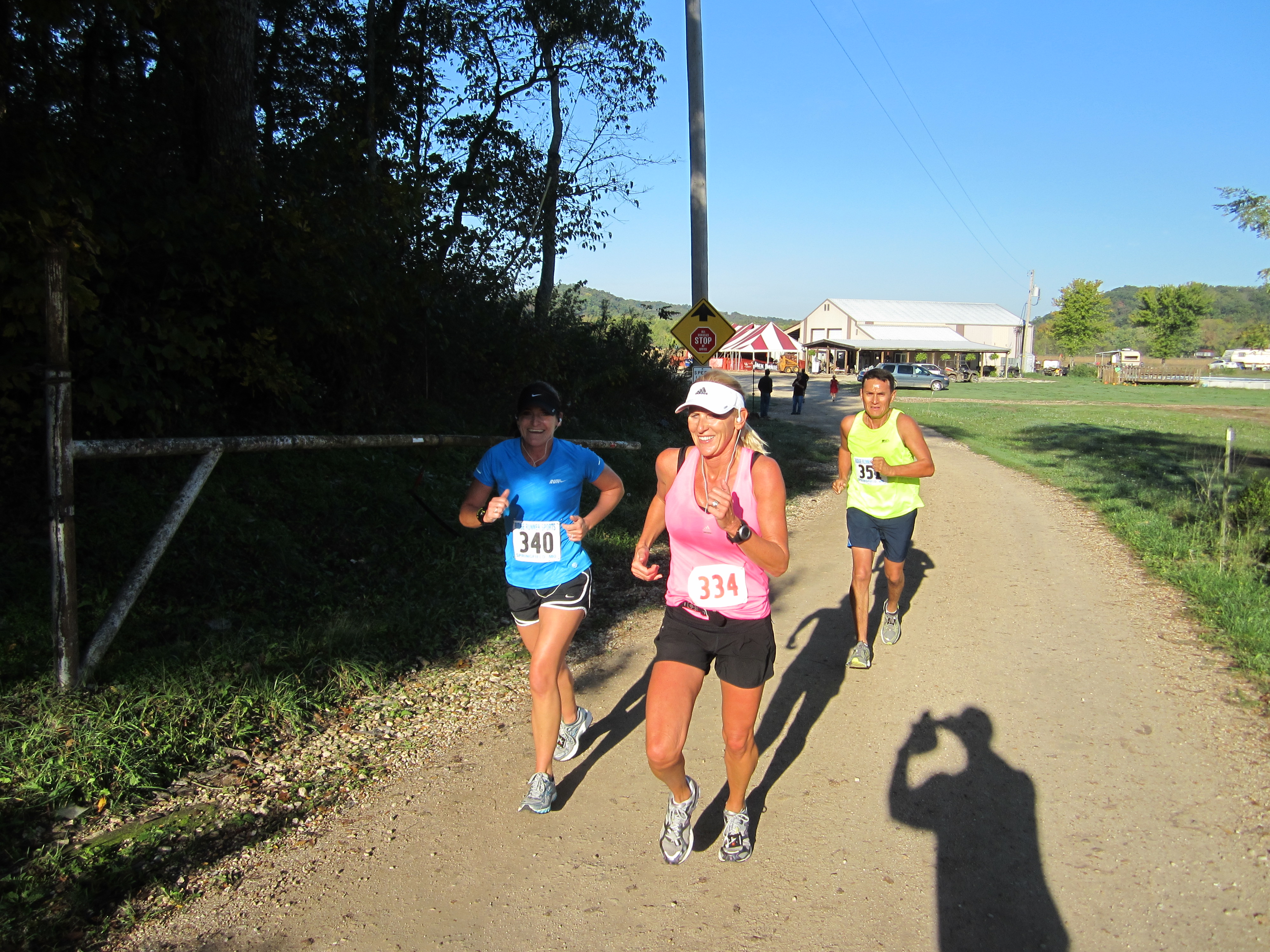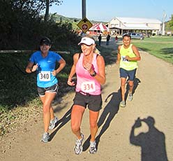 (Left to right): Jenny Bodmer (O'Fallon, Missouri; 1:51:15; 1st place female 30-39), Becki Willenbrink (Lake St. Louis, Missouri; 1:46:52; 2nd place female 40-49), and Pete Leyva (Osage Beach, Missouri; 1:46:56; 1st place male 50-59) (Download)