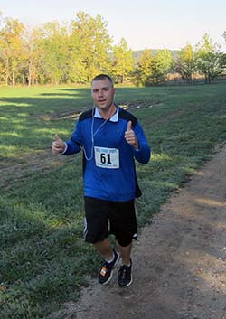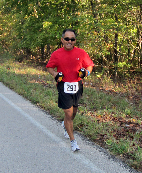 Nigher Alfaro (Camdenton, Missouri), second place male, in his first-ever half marathon, in 1:42:46 (Download)