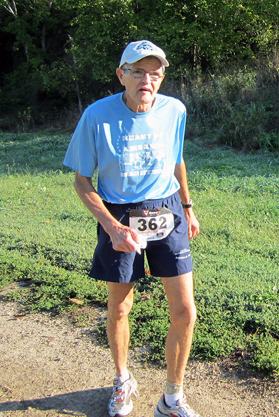 Bob Dewar (Springfield, Missouri, 1st place male 60-69). Frankly, I think Bob's 2:11:28 finish may have been the most impressive performance of the day. (Download)