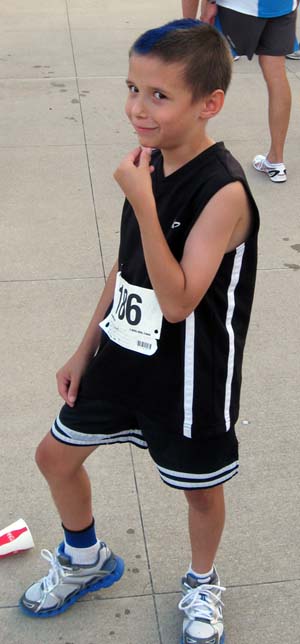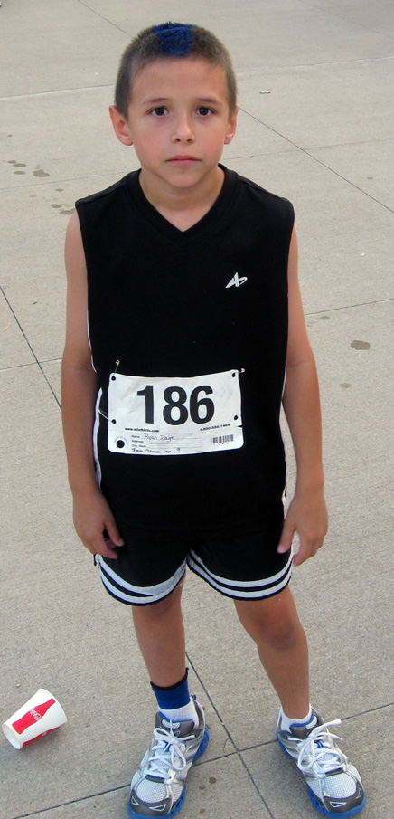 Don't let the photo on the left of an innocent-looking Ryan Page fool you. He's a little devil who finds pleasure in beating old guys in running races. (Not tonight, though, as a sprained right ankle resulting from Tae Kwon Do practice prevented him from running.)
