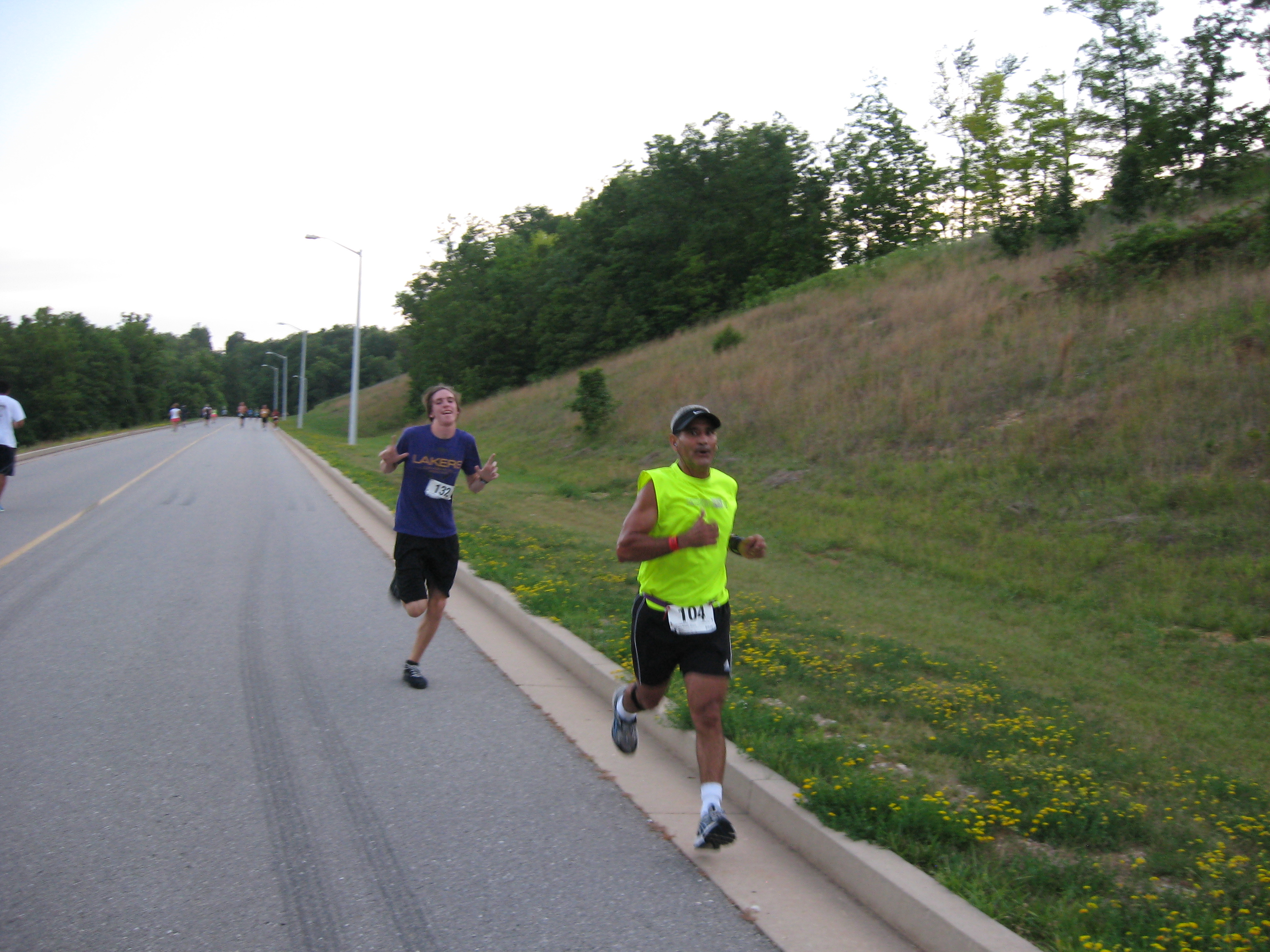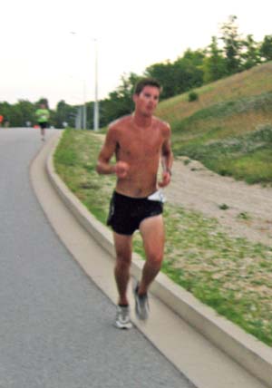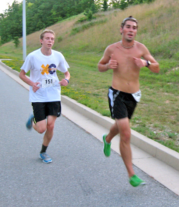 The runner on the right is local über distance runner Andy Goessmann. Andy finished the GO! St. Louis Marathon this past April, and will be running the Chicago Marathon in October. He's hoping to qualify for the Boston Marathon at that race--a lofty and extremely tough goal. I'll try to identify the runner on the left.