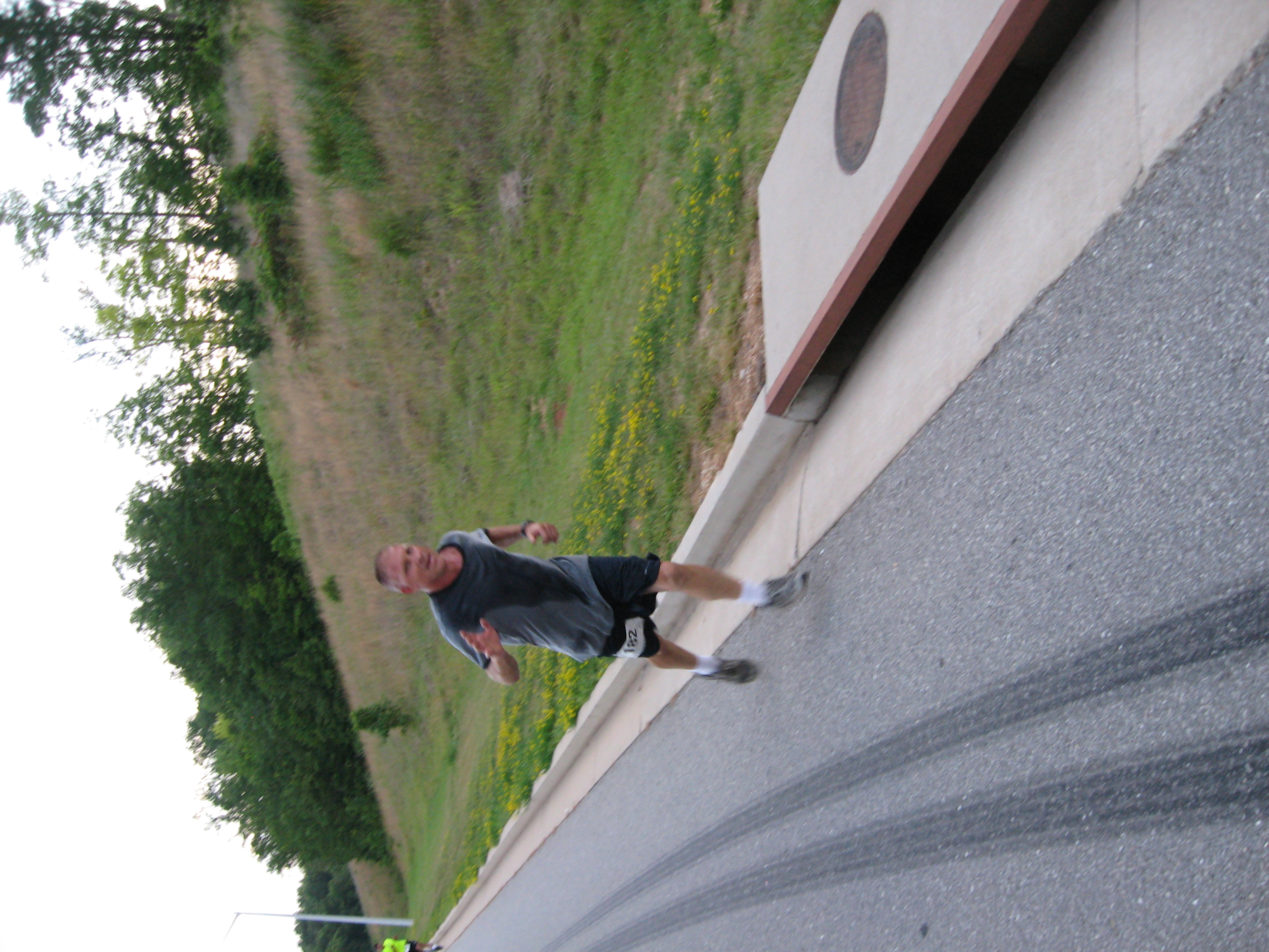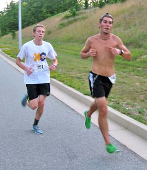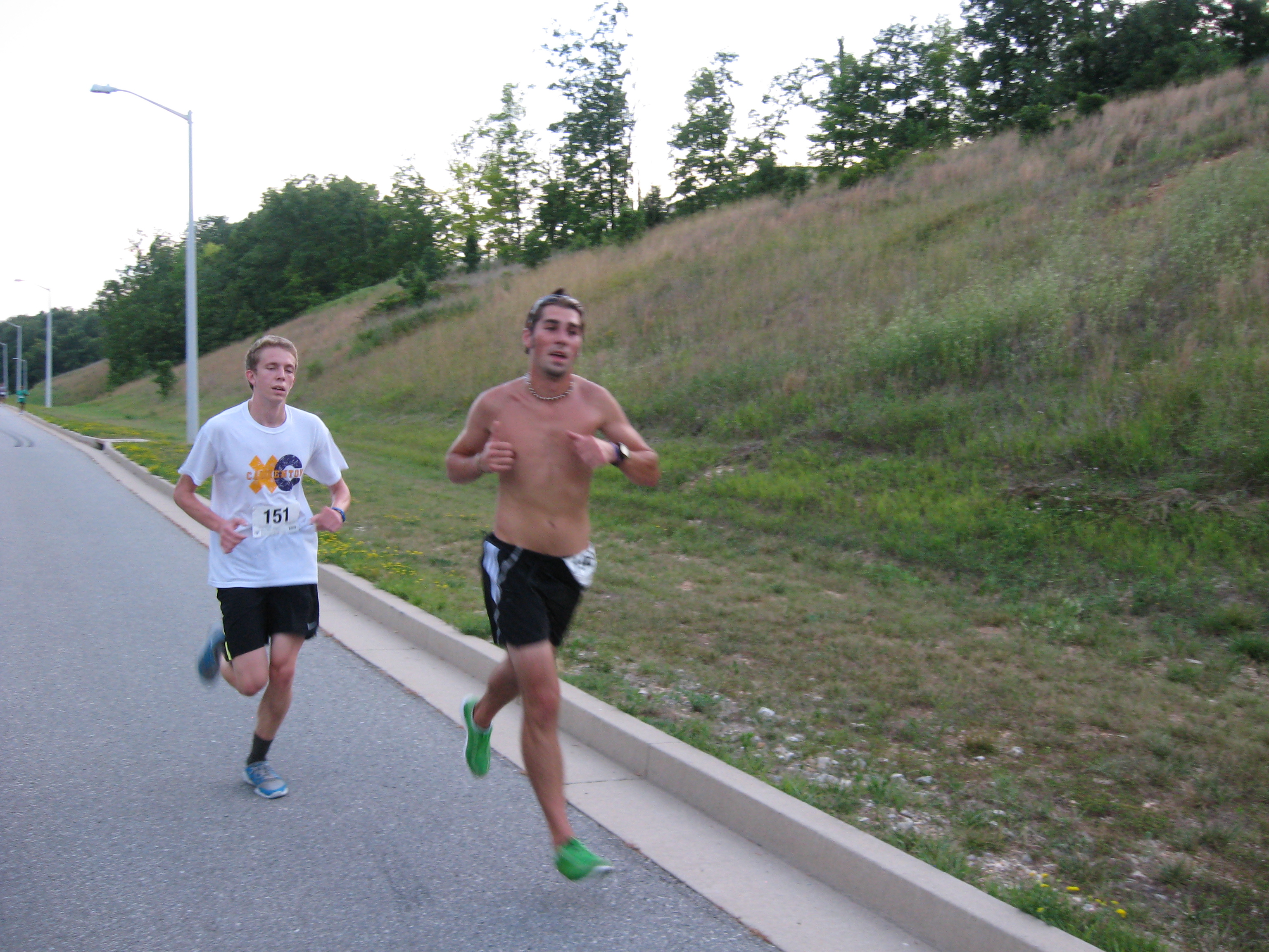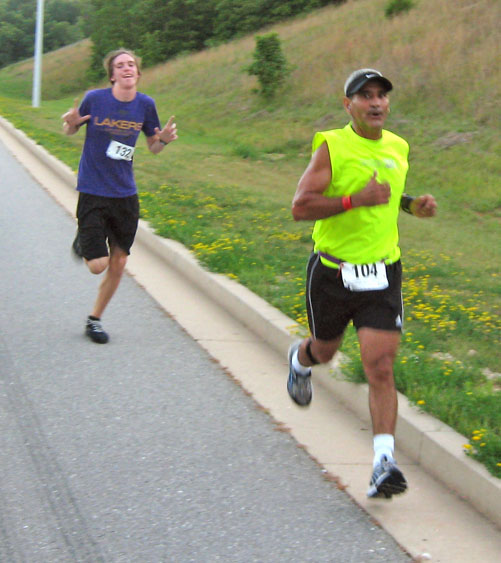 That's Rodney "the Rocket" Wright (aka "the Silver Fox") on the right. Rodney won the male 50-59 age group again this year. I'll try to identify the runner on the left.