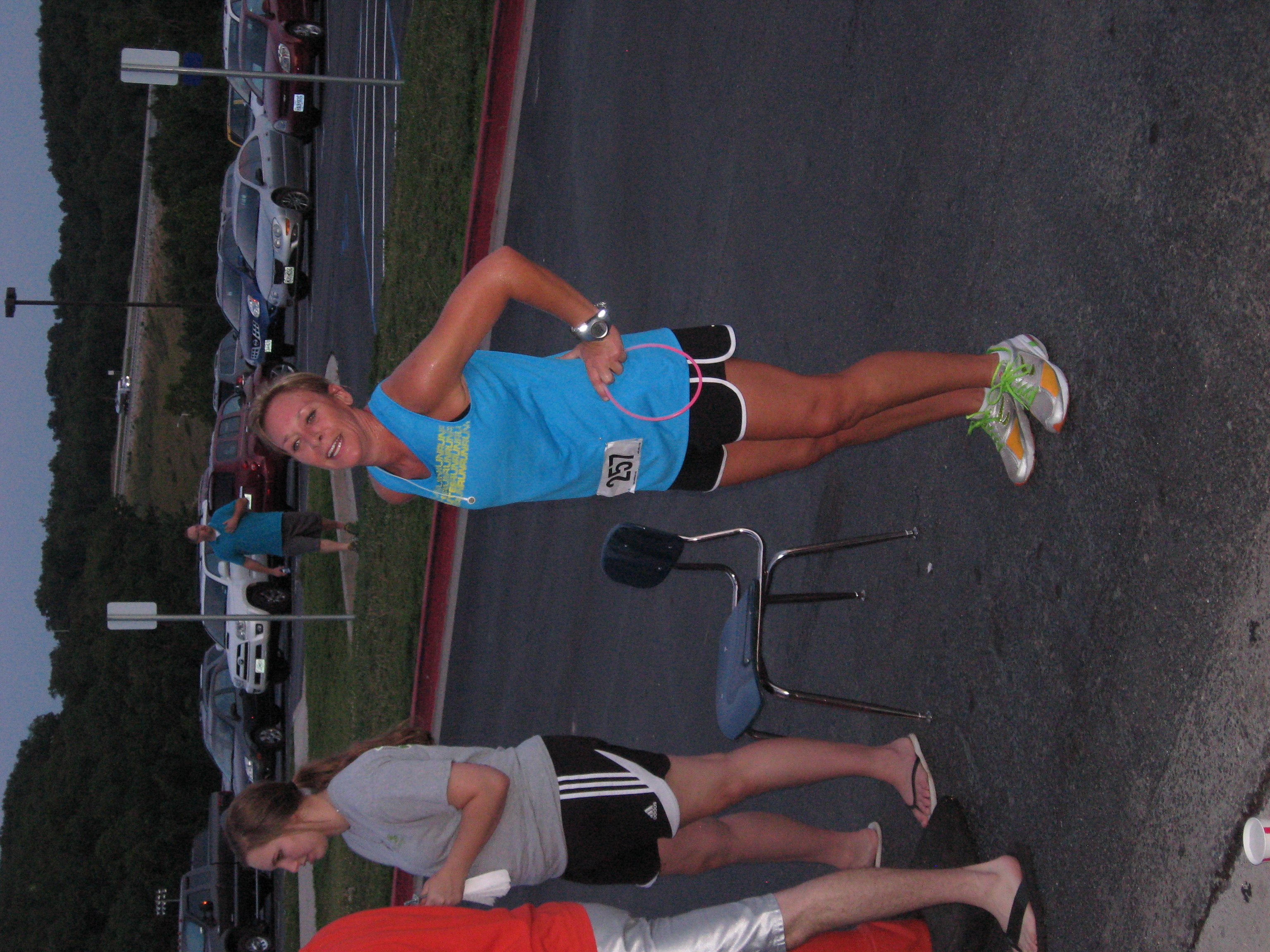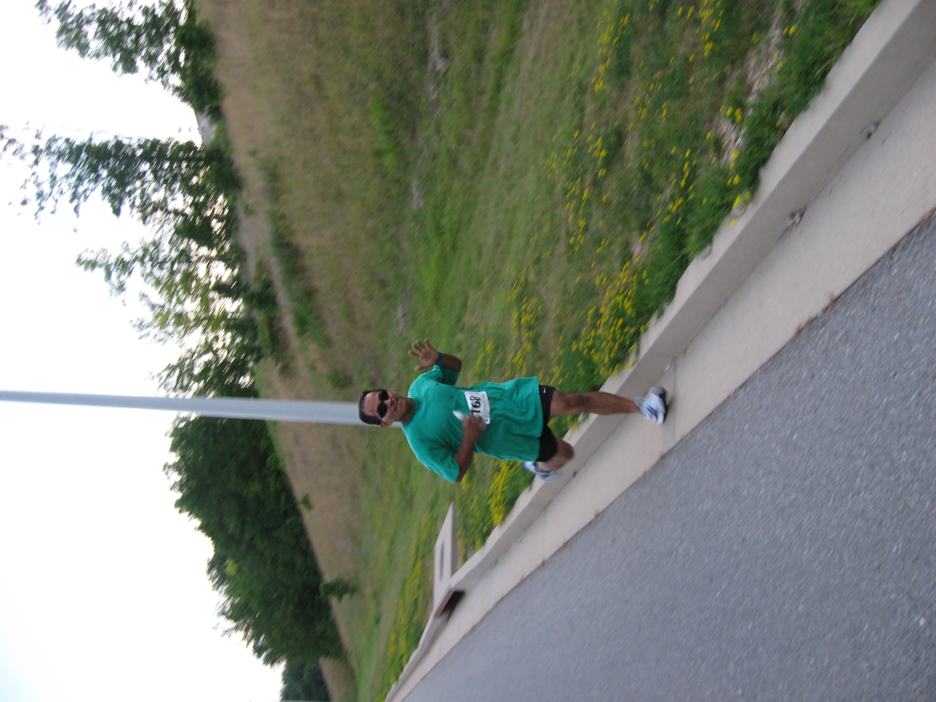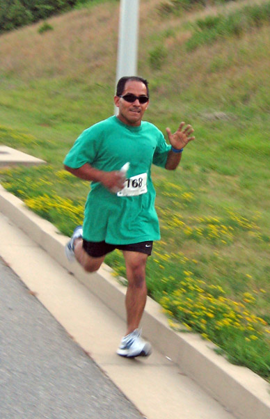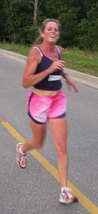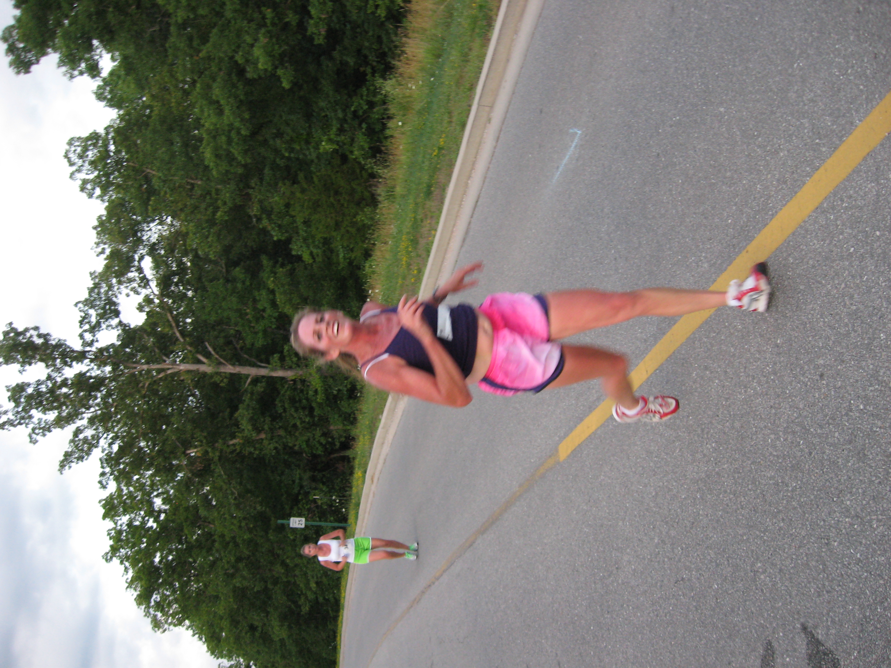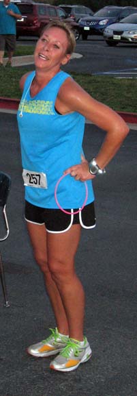 The fabulous Debi White, seconds after crossing the finish line. Debi's been doing lots of bootcamp-style strength trainingfa, and it shows. She's not only fit, but she's looking downright buff! Way to go, Debi! (Debi is taking on her first marathon--the Chicago Marathon--this coming October.)
