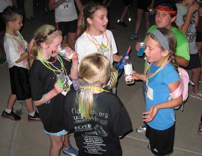 Paula was trailing far behind her daughter, Tara, for most of the 5K, but snuck up on her right at the finish line.