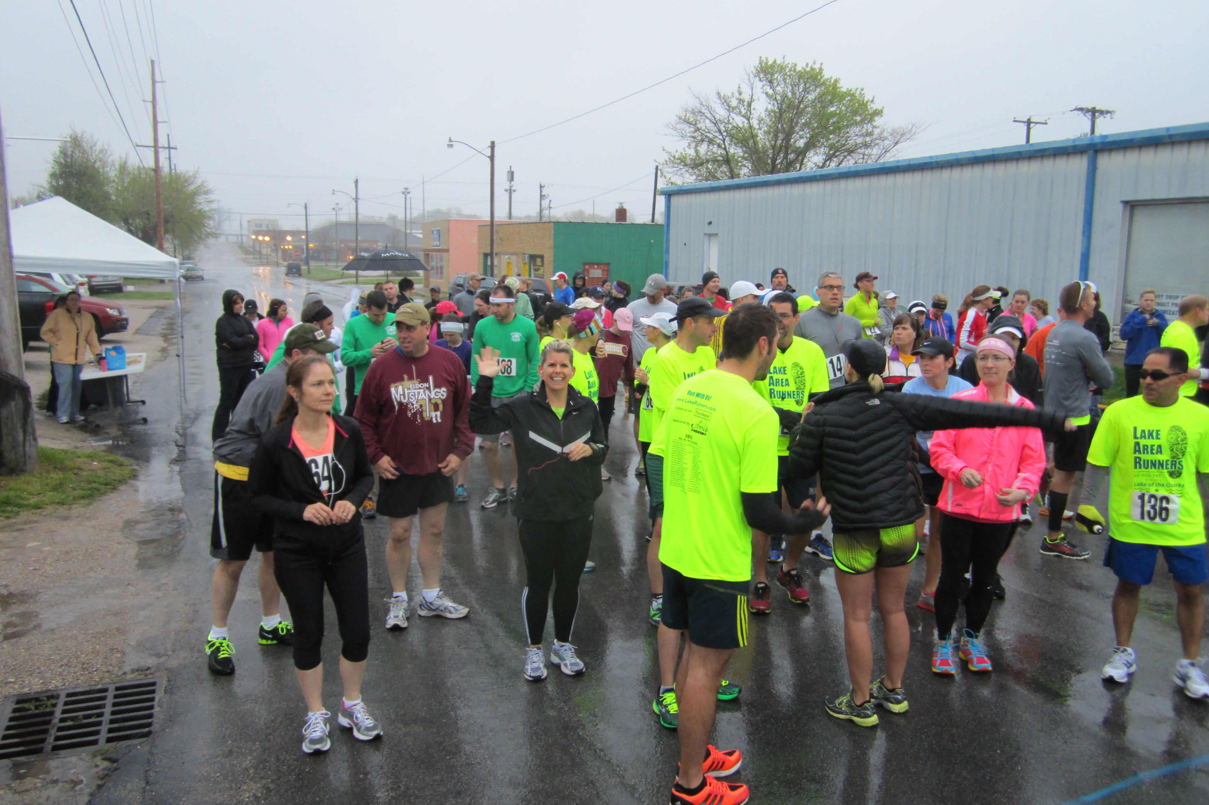And yet another. All the fast kids are up front. It's interesting to see the full range of clothing decisions that were made by the runners for the misty and breezy conditions.