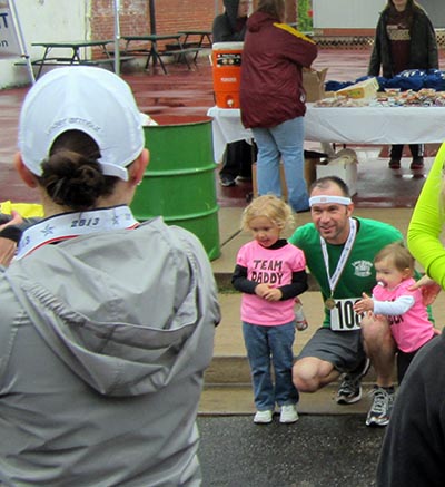 How's this for cute? Caleb Freese (2:06:21) with his adorable Team Daddy cheering squad.