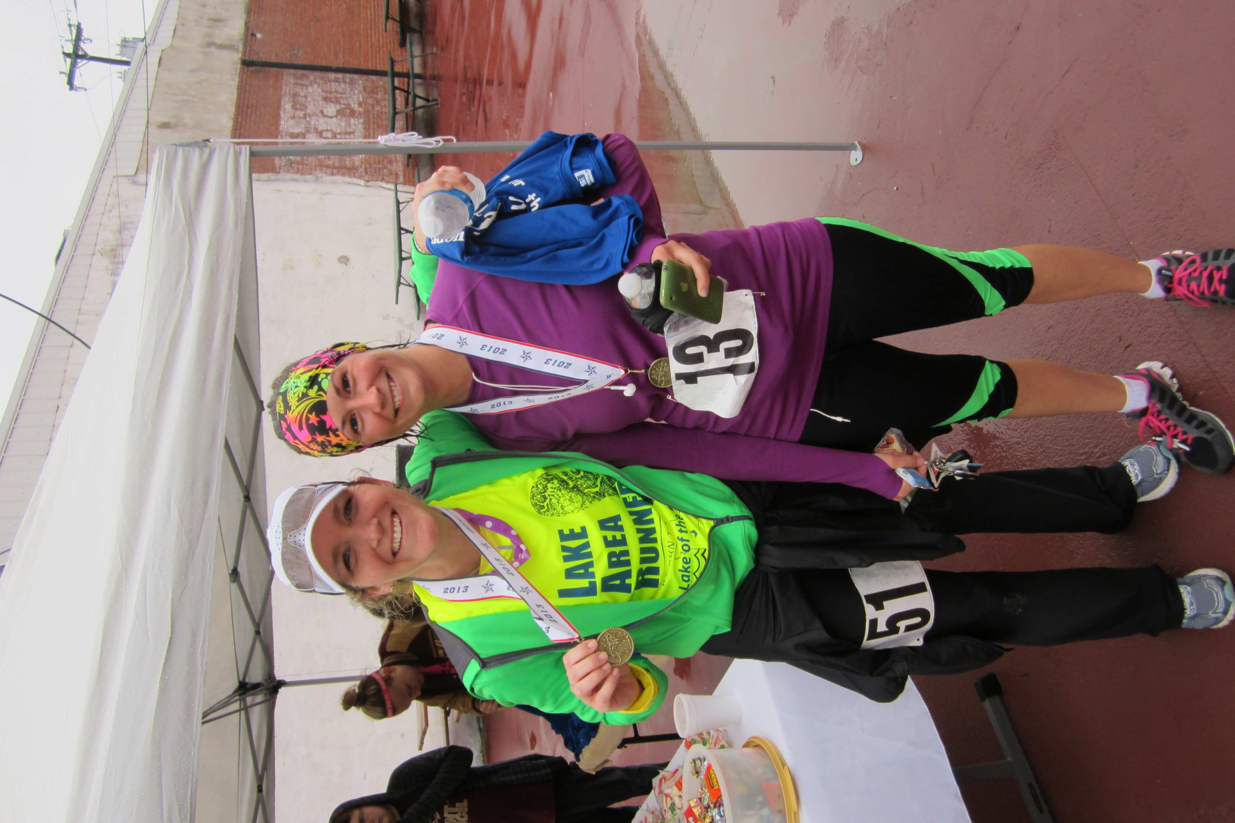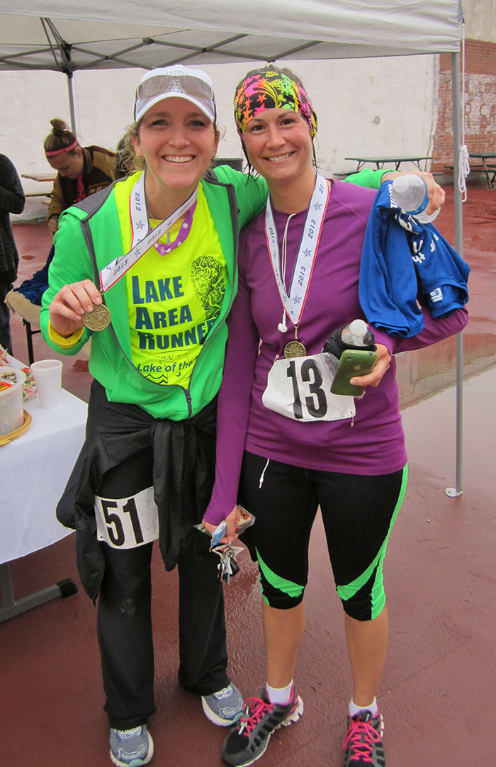 Stacie Verslues (2:10:24) (in green shirt). I'm guessing, but I think the woman in red is Jill Herigon, since she finished in exactly the same time as Stacie. (Please e-mail me if you know for sure.)